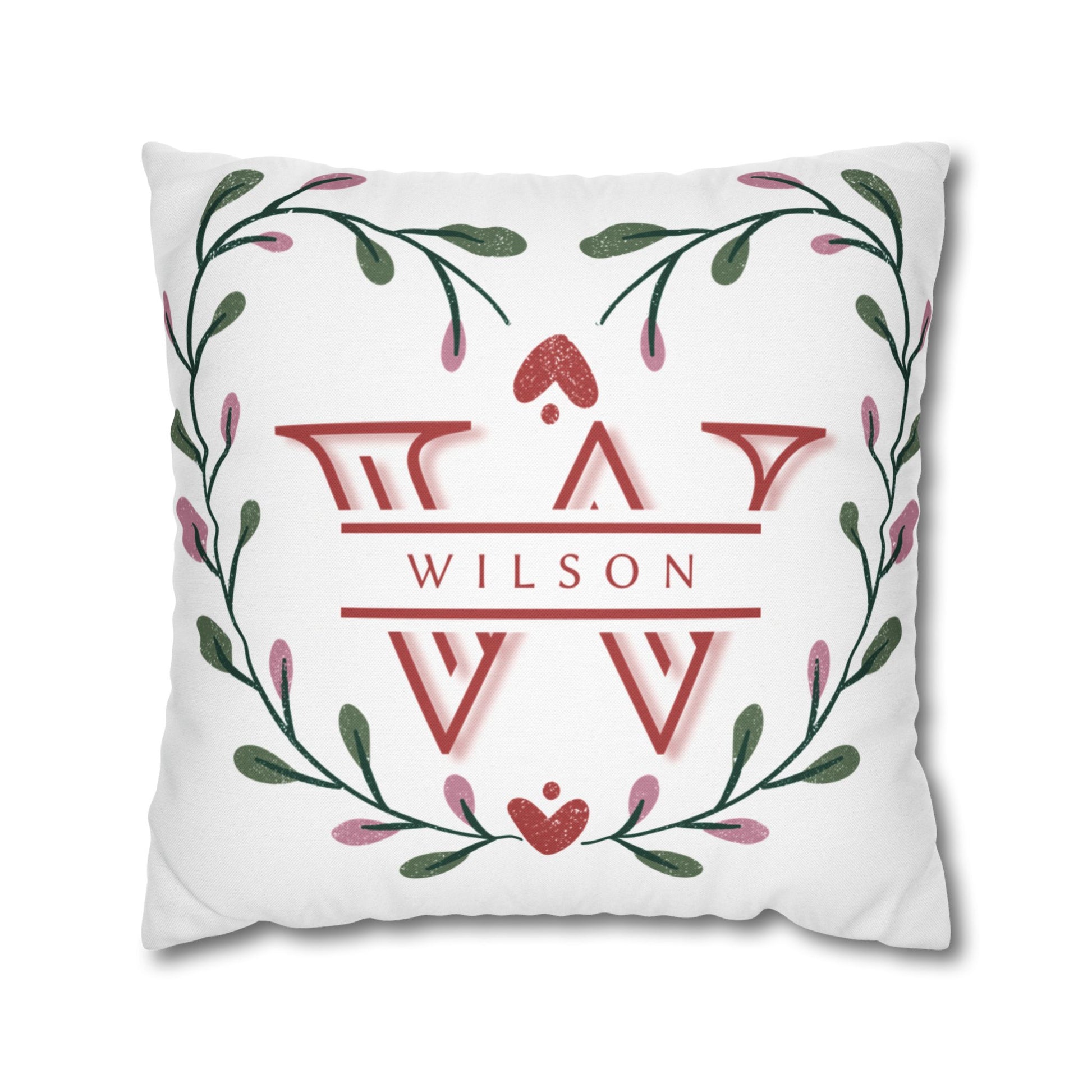 This personalized Valentine's Day throw pillow cover features a heart wreath around a customizable family name, making it a unique and festive addition to your Valentine's home decor.